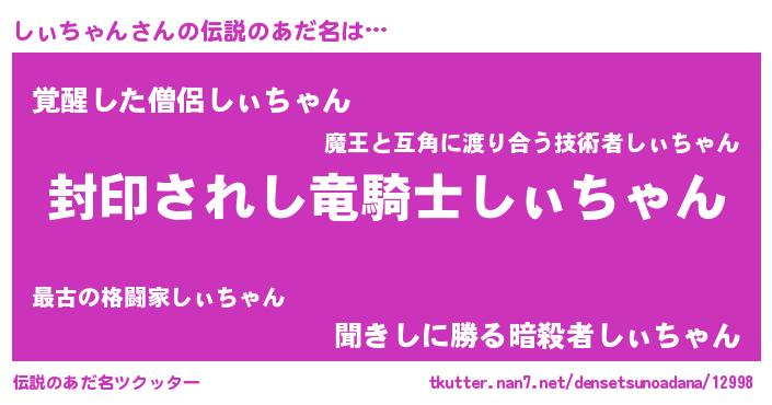 | 意味不明あだ名 | 『ペロリンしぃちゃん』『自称しぃちゃん』 |