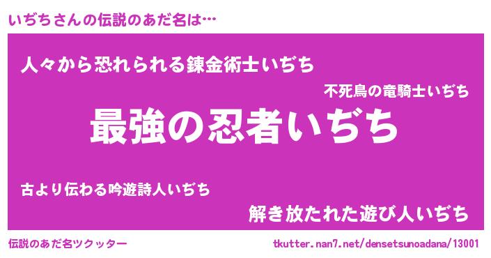| ヒーロー風カッコイイあだ名 | 『仮面イヂダー』『ウルトラいぢちマン』 |