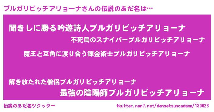 | ヒーロー風カッコイイあだ名 | 『愛の使者ブルガリビッチアリョーナ』 |
