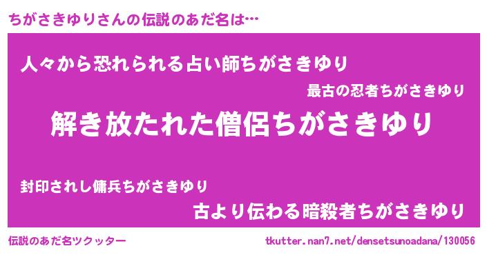 | ファンタジー風あだ名 | 『ゼチガトゥ』『ユリチガヴァット』 |