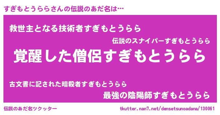 | ヒーロー風カッコイイあだ名 | 『幻影騎士スギ』 |