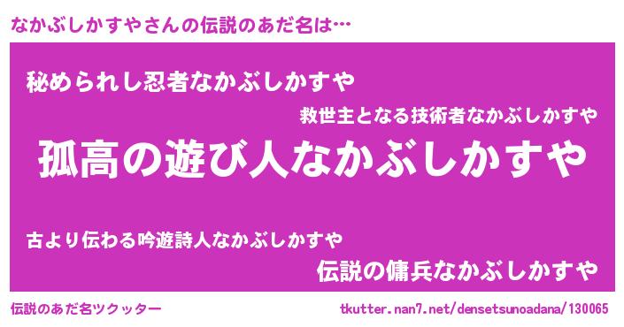 | 意味不明あだ名 | 『とにかく怪しいなかぶしかすや』 |