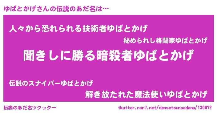 | ファンタジー風あだ名 | 『ユバディッシュ』『ゼユバトゥ』 |