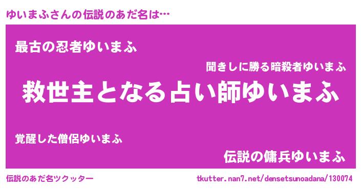 | ヒーロー風カッコイイあだ名 | 『天空の使者ゆいまふ』『ネオユイマフ』 |