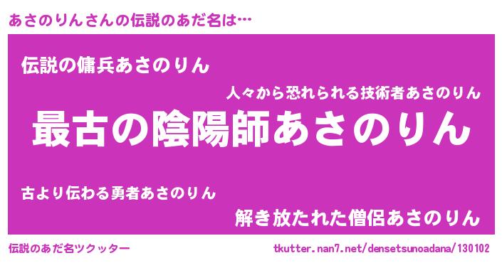 | 意味不明あだ名 | 『住所不定無職あさのりん(95歳)』 |