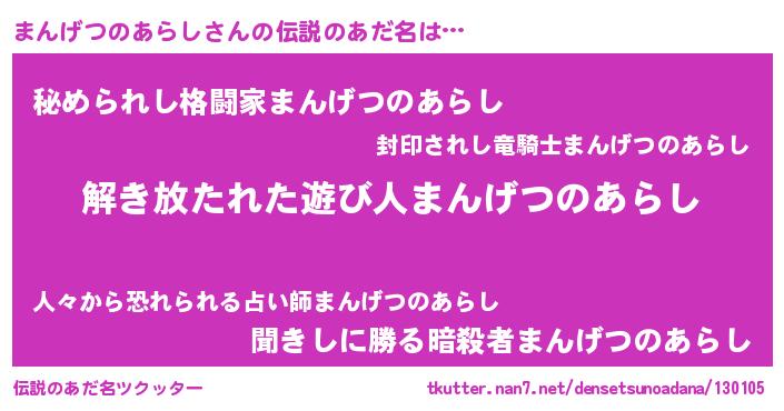| 意味不明あだ名 | 『とにかく怪しいまんげつのあらし』 |