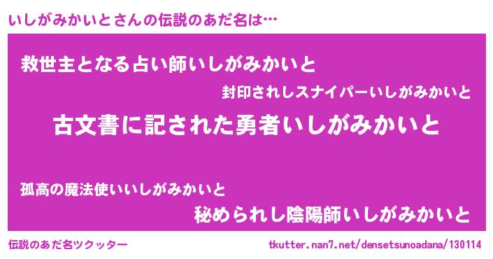 | 意味不明あだ名 | 『永久保存いしがみかいと』 |