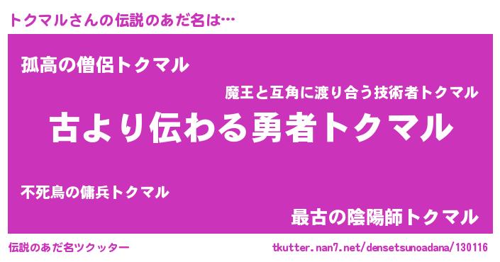| ヒーロー風カッコイイあだ名 | 『ネオトクマル』『魔戒騎士トク』 |