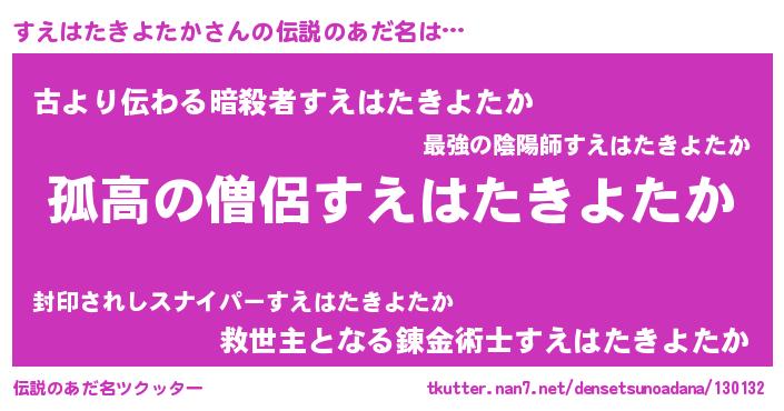 | 胡散臭い通販商品みたいなあだ名 | 『信頼と実績のネックレス…その名も「すえはたきよたか」』 |