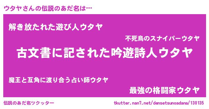 | ヒーロー風カッコイイあだ名 | 『ネオウタヤ』『黄金騎士ウタ』 |