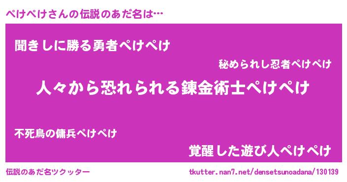 | ヒーロー風カッコイイあだ名 | 『仮面ペケダー』『正義の使者ぺけぺけ』 |