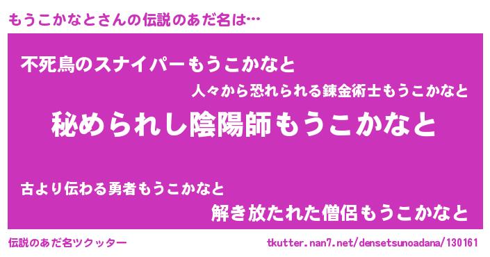 | 意味不明あだ名 | 『自称もうこかなと』 |