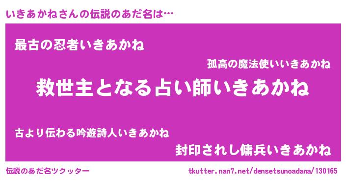 | ヒーロー風カッコイイあだ名 | 『天空の使者いきあかね』『仮面イキダー』 |