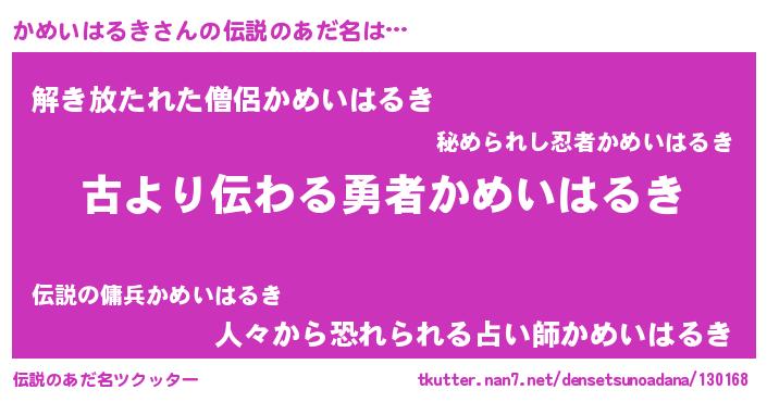 | 意味不明あだ名 | 『住所不定無職かめいはるき(77歳)』 |