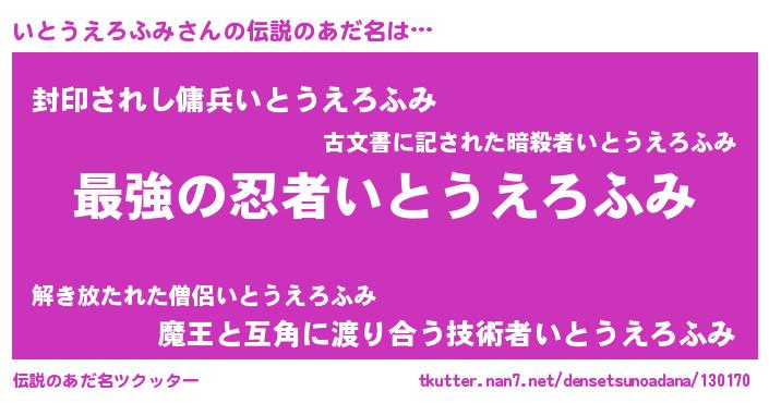 | ヒーロー風カッコイイあだ名 | 『最強戦士イトウエロフミ』 |