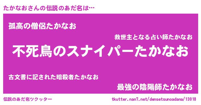| 胡散臭い通販商品みたいなあだ名 | 『モテモテ間違いなし霊験あらたかなお札…その名も「たかなお」』 |