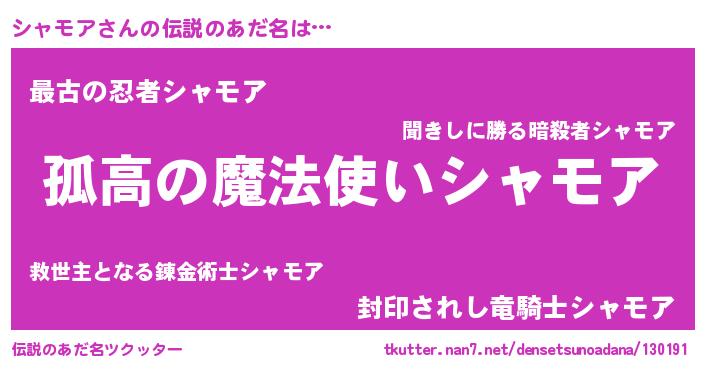 | ヒーロー風カッコイイあだ名 | 『仮面シャダー』『黄金騎士シャ』 |