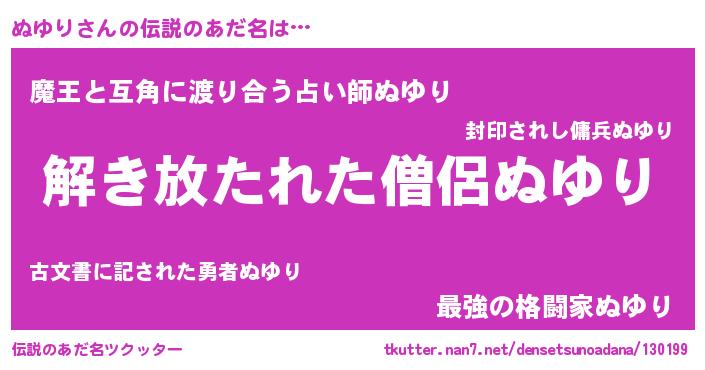 | 恥ずかしいあだ名 | 『ヌユリンリン』『ヌユリデラックス』 |