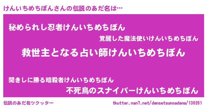 | ヒーロー風カッコイイあだ名 | 『天空の使者けんいちめちぼん』 |