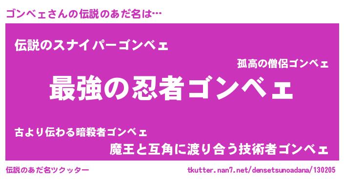 | ヒーロー風カッコイイあだ名 | 『ウルトラゴンベェマン』『魔戒騎士ゴン』 |