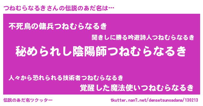 | 意味不明あだ名 | 『つねむらなるきフォーエバー』 |