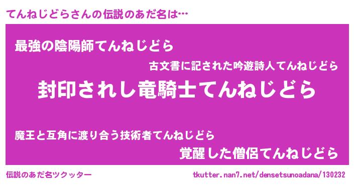 | 胡散臭い通販商品みたいなあだ名 | 『億万長者になれるブレスレット…その名も「てんねじどら」』 |