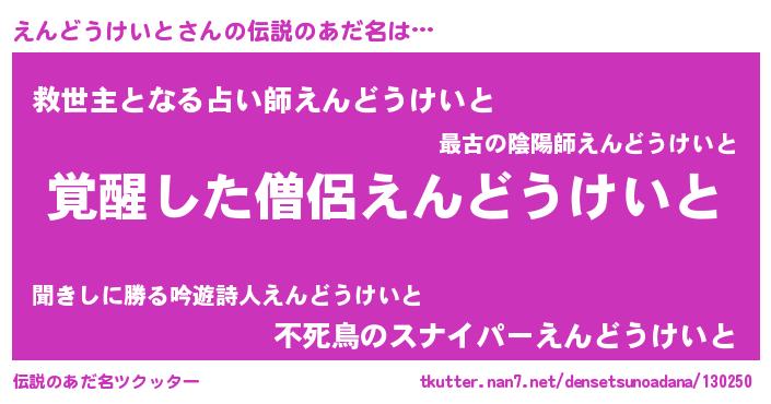 | 意味不明あだ名 | 『自称えんどうけいと』 |