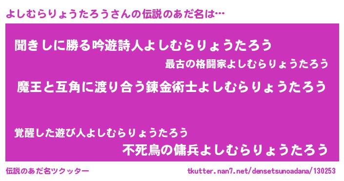 | ヘコむあだ名 | 『よしむらりょうたろう(震え声)』 |