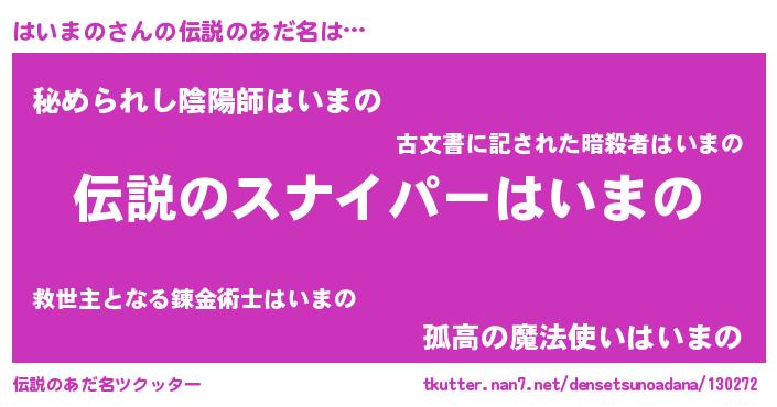 | 胡散臭い通販商品みたいなあだ名 | 『必ず成功する霊験あらたかなお札…その名も「はいまの」』 |