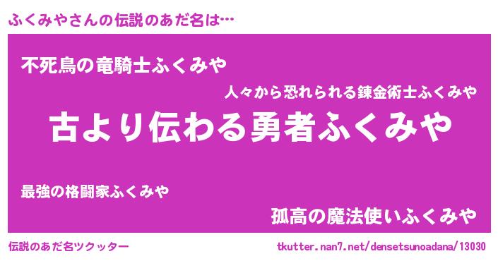 | ヘコむあだ名 | 『ふくみや(震え声)』『ふくにー』 |