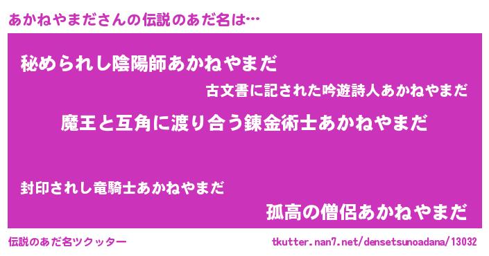 | 女子向けラノベタイトル風あだ名 | 『あかねやまだ恋絵巻』 |