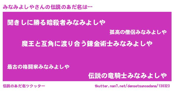 | ヒーロー風カッコイイあだ名 | 『サイバー戦士ミナミヨシヤ』 |