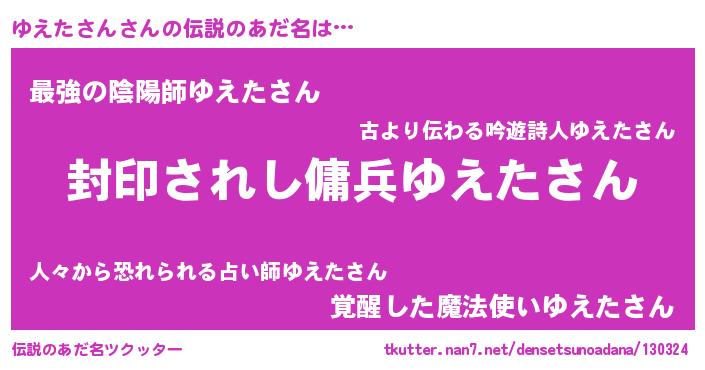 | ヒーロー風カッコイイあだ名 | 『スーパーユエタサン』『仮面ユエダー』 |