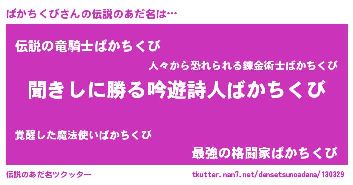 | 意味不明あだ名 | 『永久保存ばかちくび』『自称ばかちくび』 |
