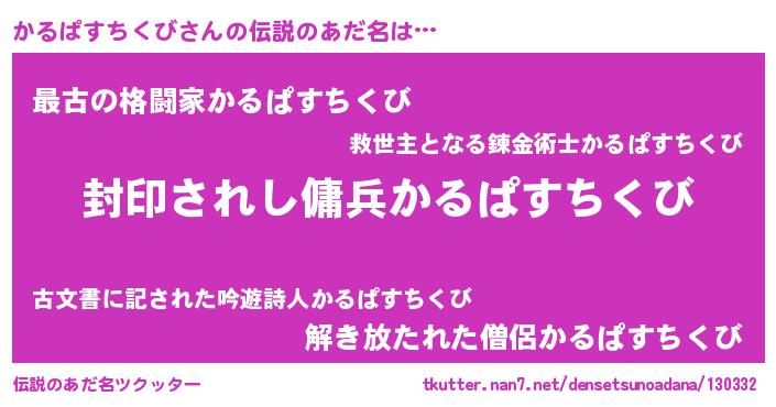 | 胡散臭い通販商品みたいなあだ名 | 『億万長者になれる水晶球…その名も「かるぱすちくび」』 |