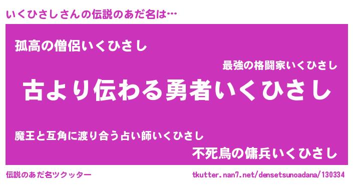 | ヘコむあだ名 | 『いくひさし(震え声)』『いくを』 |
