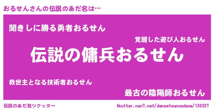 | 男性向けラノベタイトル風あだ名 | 『魔弾の王とおるせん』『おるせんの憂鬱』 |