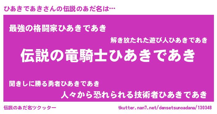 | ヘコむあだ名 | 『ひあにー』『レバニラ』 |