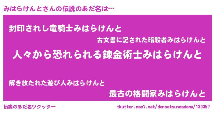 | ヒーロー風カッコイイあだ名 | 『友情の使者みはらけんと』 |