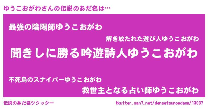 | 男性向けラノベタイトル風あだ名 | 『はたらくゆうこおがわさま!』 |
