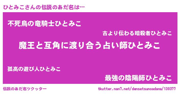 | 胡散臭い通販商品みたいなあだ名 | 『お金では代えられないイリジウム磁石…その名も「ひとみこ」』 |