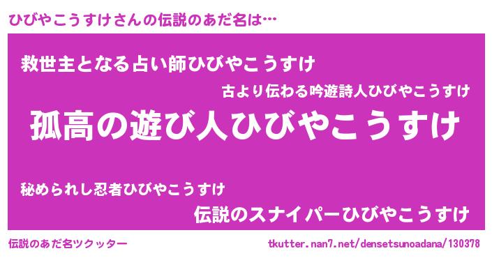| 意味不明あだ名 | 『住所不定無職ひびやこうすけ(95歳)』 |