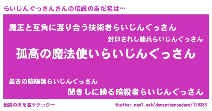 | ヘコむあだ名 | 『らいお』『らいじんぐっさん(笑)』 |