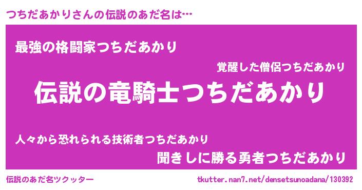 | ヒーロー風カッコイイあだ名 | 『スーパーツチダアカリ』『幻影騎士ツチ』 |