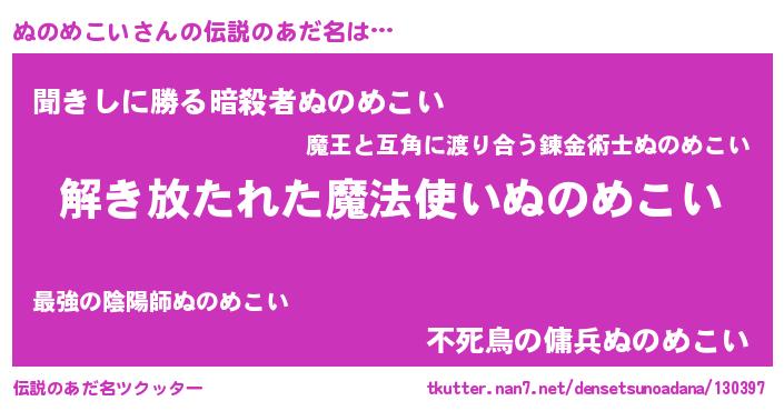 | ヒーロー風カッコイイあだ名 | 『幻影騎士ヌノ』『ネオヌノメコイ』 |