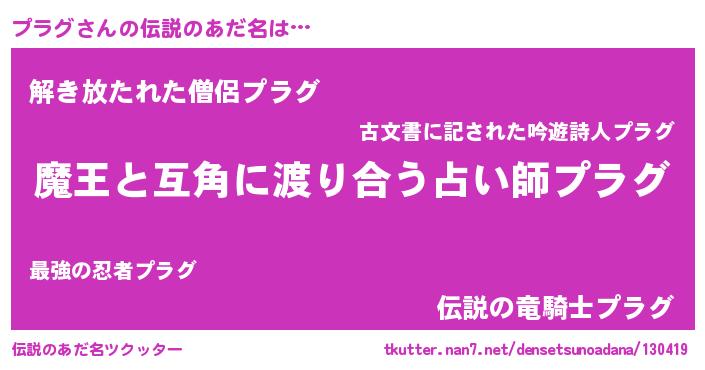 | ヒーロー風カッコイイあだ名 | 『仮面プラダー』『愛の使者プラグ』 |