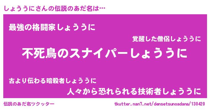 | 胡散臭い通販商品みたいなあだ名 | 『モテモテ間違いなし霊験あらたかなお札…その名も「しょううに」』 |