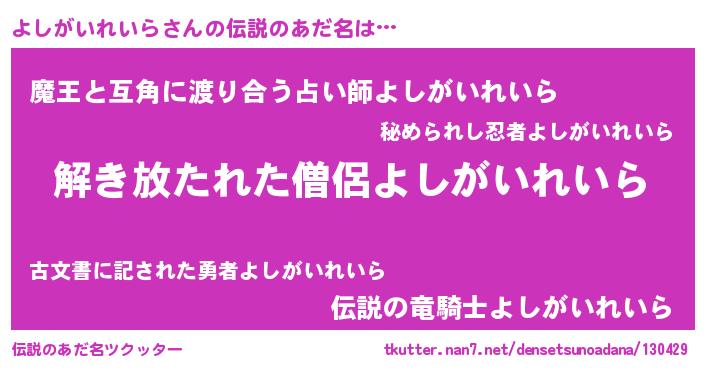 | 意味不明あだ名 | 『とにかく怪しいよしがいれいら』 |