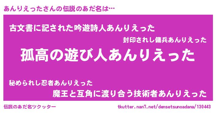 | 意味不明あだ名 | 『とにかく怪しいあんりえった』 |