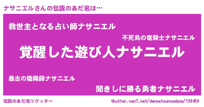 | ヒーロー風カッコイイあだ名 | 『炎刃騎士ナサ』『愛の使者ナサニエル』 |